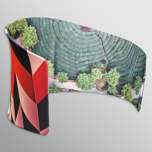 Clip the aluminium frame together and stretch the fabric graphic over the frame. Zip it up and you’ve got an eye-catching one-piece, ready formed stand, printed on all sides.