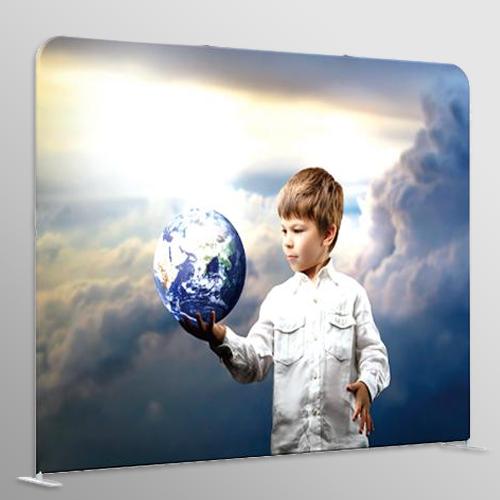 Straight backdrops are made from a strong, lightweight, aluminium frame and a stretchy cover, which is printed front and reverse. They are perfect for defining an exhibition area or dividing open office space.